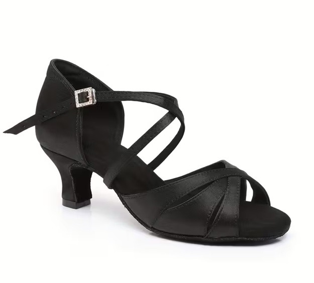 Deze dames dansschoenen zijn uitgevoerd in zwart satijn met een elegante hak van 5 cm.